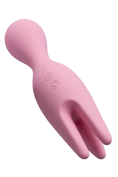 指先でくすぐるように回転するローターと、パワフルなバイブレーション刺激を楽しめる電マが一体化したラブグッズ。