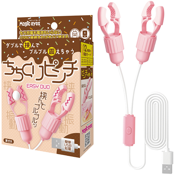 電池不要でUSBから給電できるピンチャータイプの乳首責めローターです!2つのピンチにモーターが搭載されており、12種類の振動パターンで乳首を心地よく刺激します♪先端部分にはシリコンカバーが付いており、優しく包み込むような感触を提供します!コードの長さは1メートルほどあり、場所を選ばず扱いやすい設計です♪モバイルバッテリーやUSBアダプターからも給電できるので便利に使用できます!