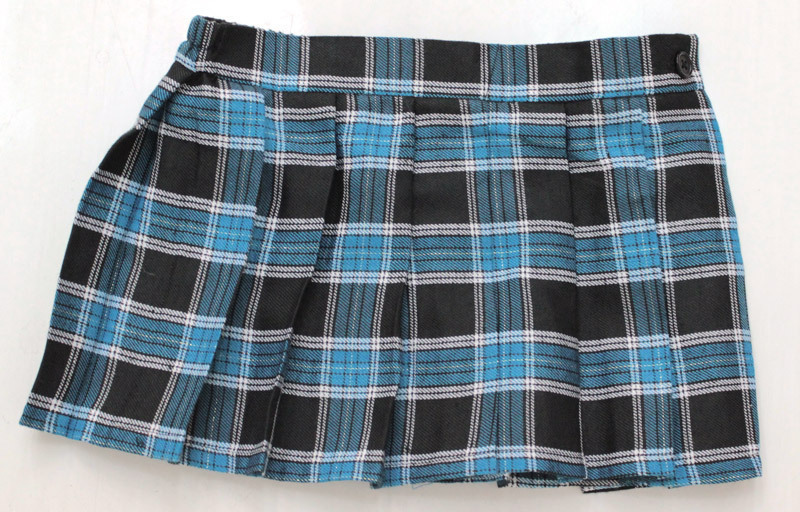 見せパンをはいて堂々と着こなしたい!びっくりするほど短い、セクシーな青いチェックスカート(M)。