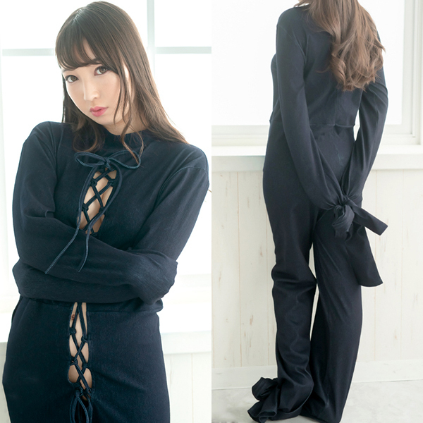 ストレッチが効いていて長く設えたデザインの袖は両手足を縛ったり、四股をまとめて括ったりと自由な拘束を実現♪チラリと見える胸元、レースアップから除き見える肌がエロい!拘束する喜びと縛られる嬉しさを同時に叶えてくれる珠玉の一着となっています♪お洗濯する際には他のものと一緒に洗わないようご注意ください。